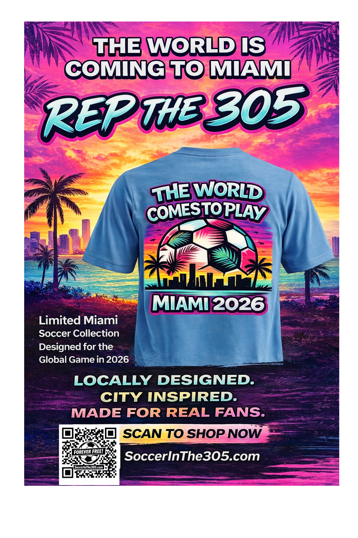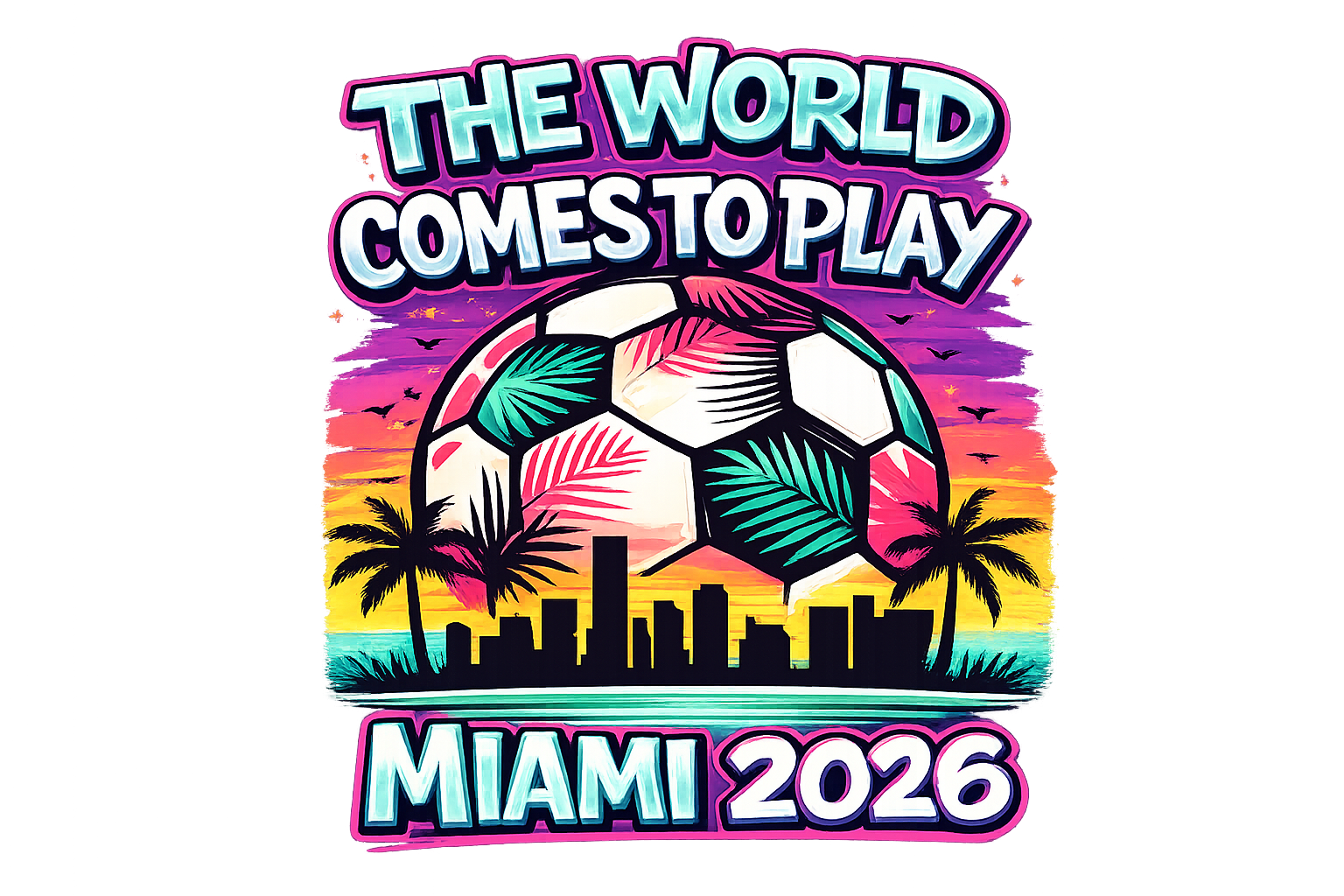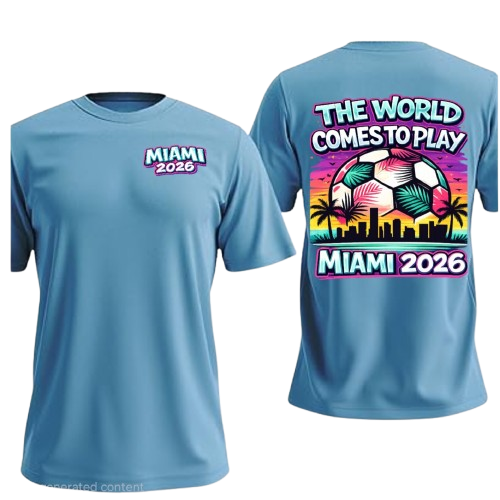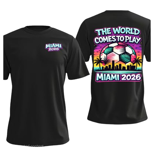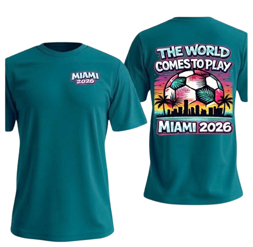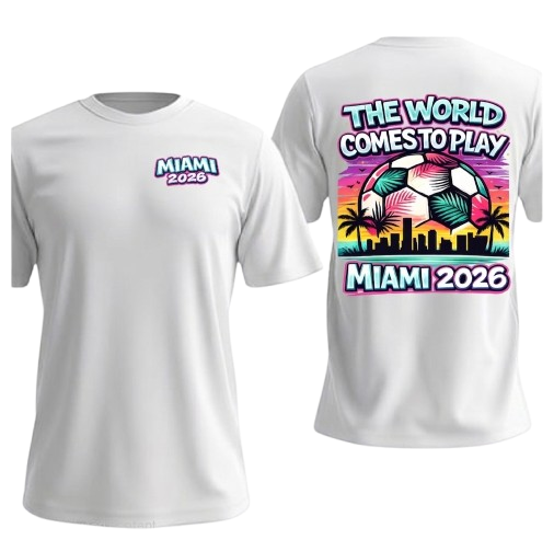 Miami 2026 “The World Comes To Play” design. Front & back print .